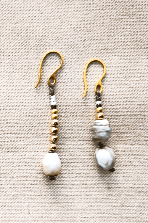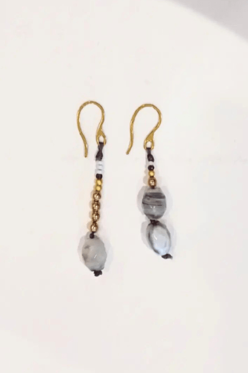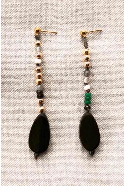 The BALCONY Earrings are a simple asymmetric design. It’s confident: a Mediterranean-inspired, modern pair of earrings with agate stones cascading.