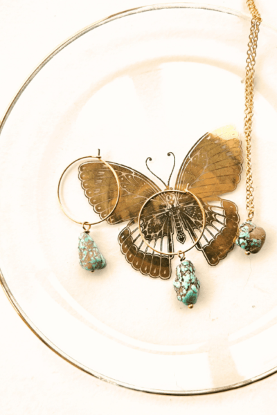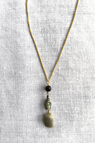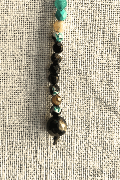 These pieces are handmade, lightweight, and made with agate gemstones and gold-plated beads.