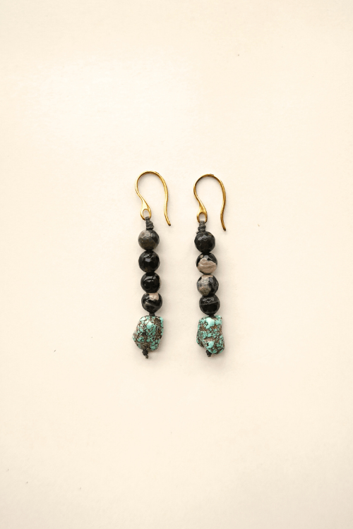 The ISLET DROP Earrings have a soft vertical movement. Designed to move gently with the wearer, ending with a big turquoise rock.