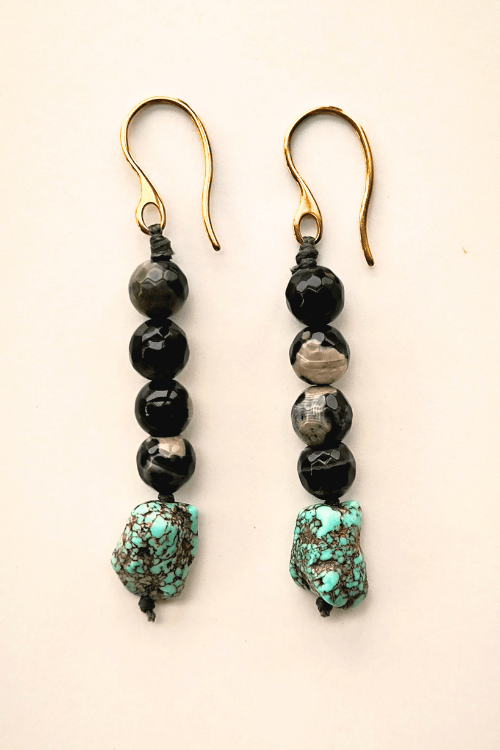 These pieces are handmade, lightweight, and made with agate gemstones and turquoise.